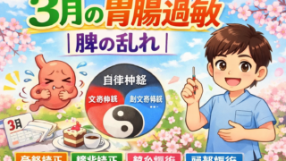 3月の胃腸過敏は脾の乱れと自律神経が原因。骨盤矯正・猫背矯正・鍼灸・頭部施術で整えます。小田原市、南足柄市、開成町、秦野市、中井町、大井松田町の方はくろちゃん鍼灸整体院へご相談ください。