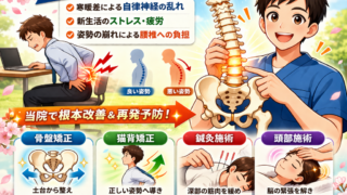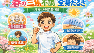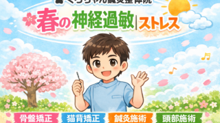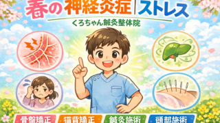 春に増える首神経痛は頸椎負担と自律神経の乱れが原因。骨盤矯正・猫背矯正・鍼灸で根本改善。小田原市・南足柄市・開成町・秦野市・中井町・大井松田町対応のくろちゃん鍼灸整体院