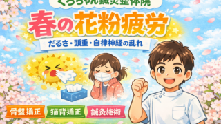 春の花粉疲労によるだるさ・頭重・自律神経の乱れを骨盤矯正・猫背矯正・鍼灸施術で改善。小田原市・南足柄市・開成町・秦野市・中井町・大井松田町対応のくろちゃん鍼灸整体院。