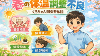 春の体温調整不良は自律神経と東洋医学の乱れが原因。骨盤矯正・猫背矯正・鍼灸施術で改善へ。小田原市・南足柄市・開成町・秦野市・中井町・大井松田町の方はくろちゃん鍼灸整体院へ。