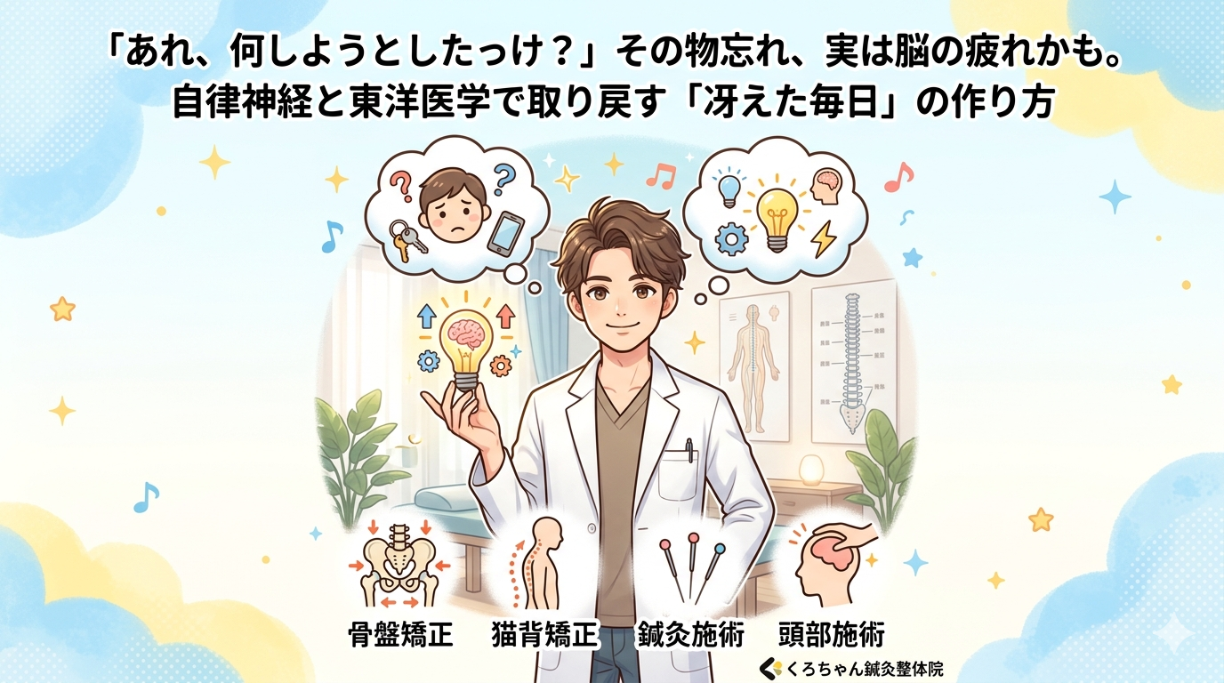 家事や仕事、育児に追われる毎日の中で、私たちは無意識に膨大な情報を処理しています。くろちゃん鍼灸整体院に来られる患者様からも、「最近、記憶力が落ちて仕事に支障が出そうで怖い」「うっかりミスが増えて自信をなくしている」というお悩みを本当によく伺います。