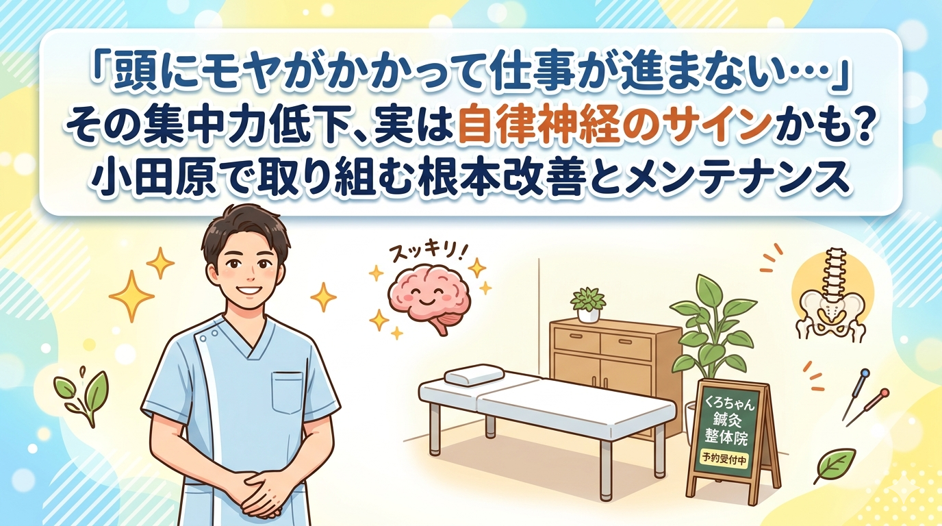 こんにちは!くろちゃん鍼灸整体院です。 実は今、こうした**「集中力の著しい低下」や「脳のモヤモヤ感(ブレインフォグ)」**に悩む方がとても増えています。