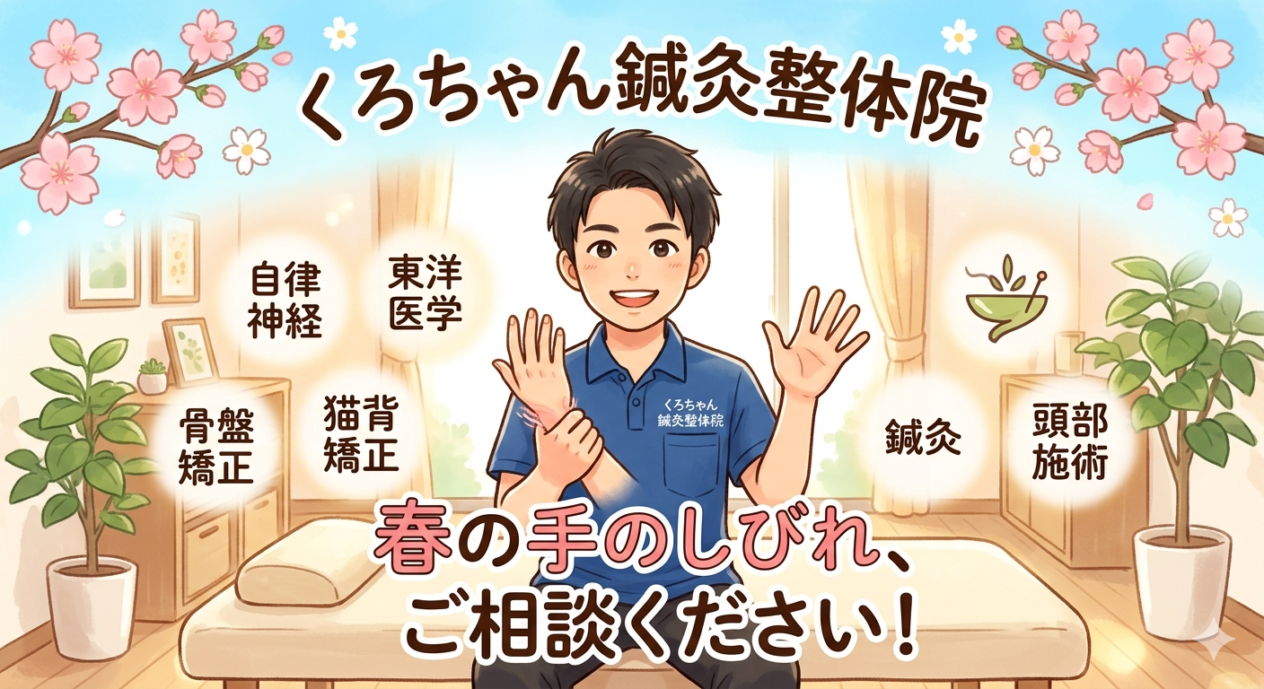 【春の手のしびれ】その原因は自律神経かも?小田原で根本改善を目指すなら「くろちゃん鍼灸整体院」へ