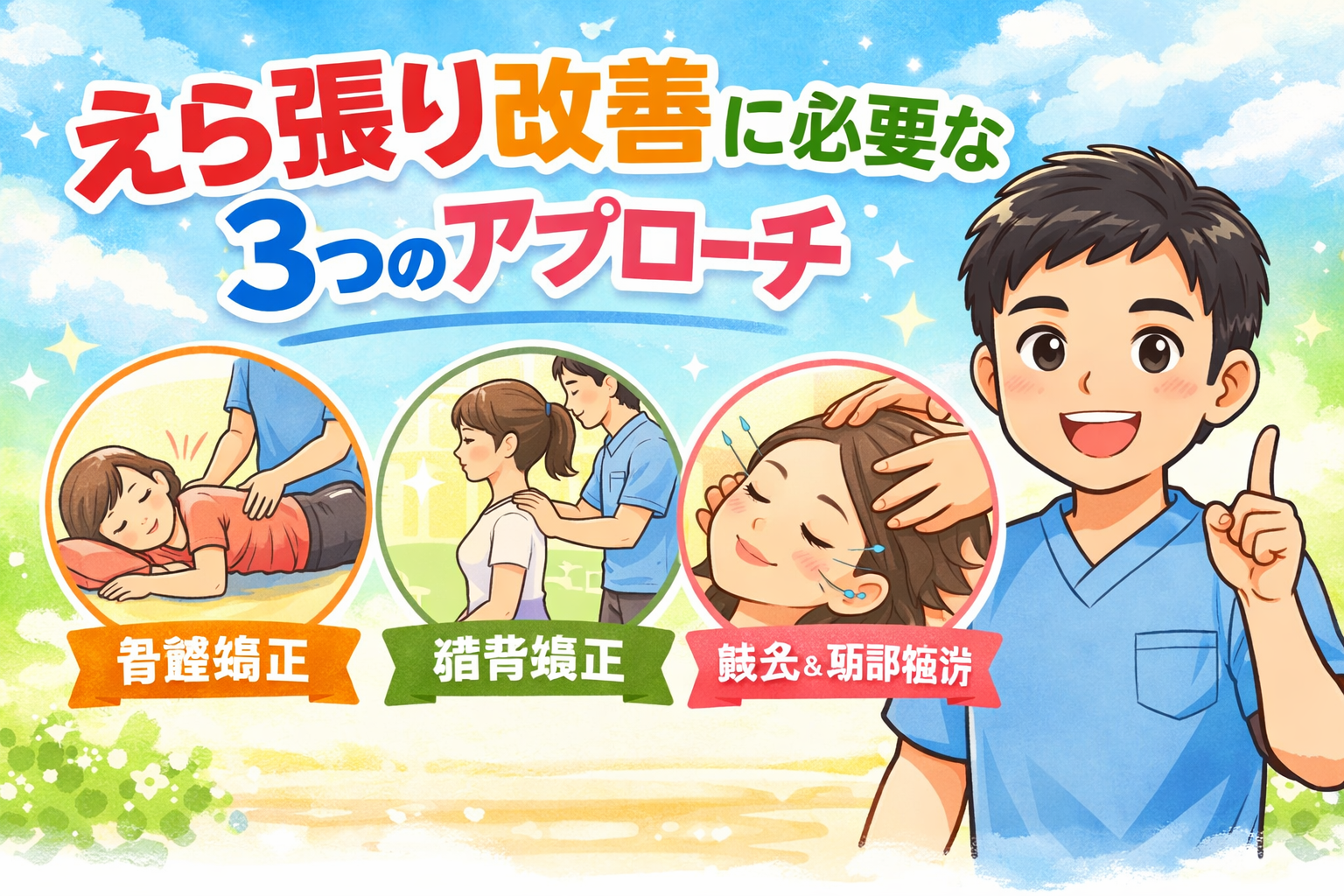 今日は、えら張り改善に必要な「3つのアプローチ」を、できるだけわかりやすくお話していきます。