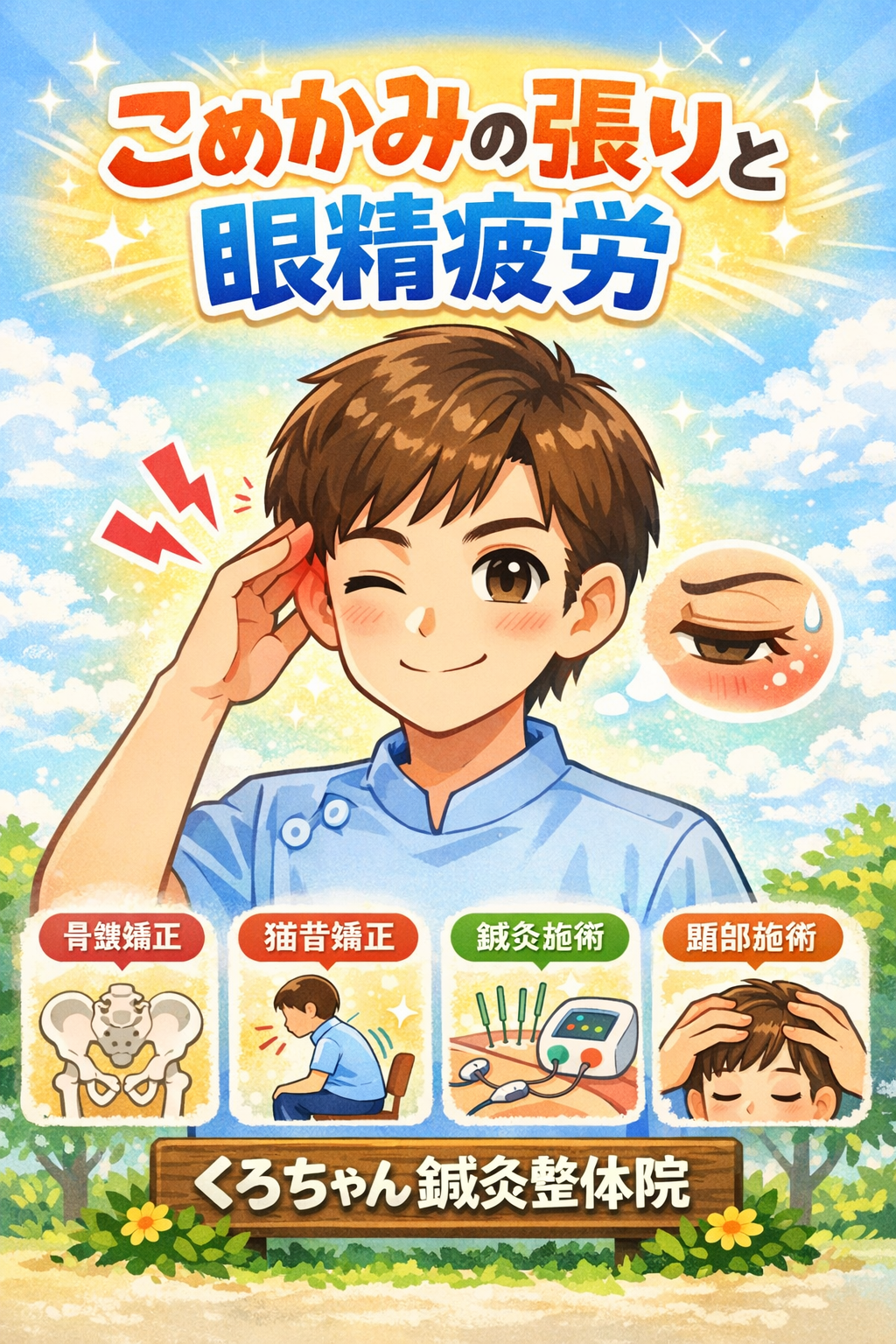 実は、こめかみの張りと眼精疲労は、