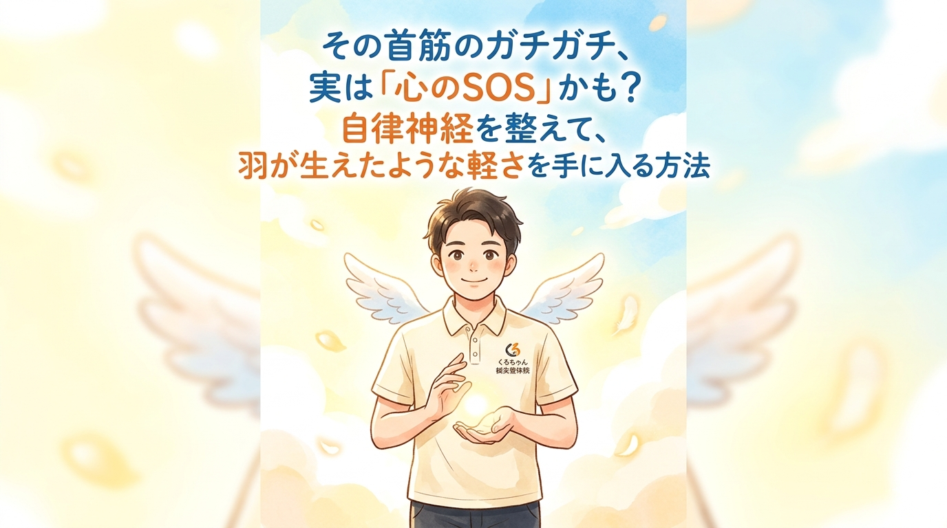 当院に来られる患者様の多くが、この「異常な首のコリ」に悩まされています。実は、首のコリは単なる筋肉の疲れだけではないんです。首は、私たちの体をコントロールする「自律神経」が密集する、いわば命の通り道。ここがガチガチに固まってしまうと、体だけでなく心まで重たくなってしまいますよね。