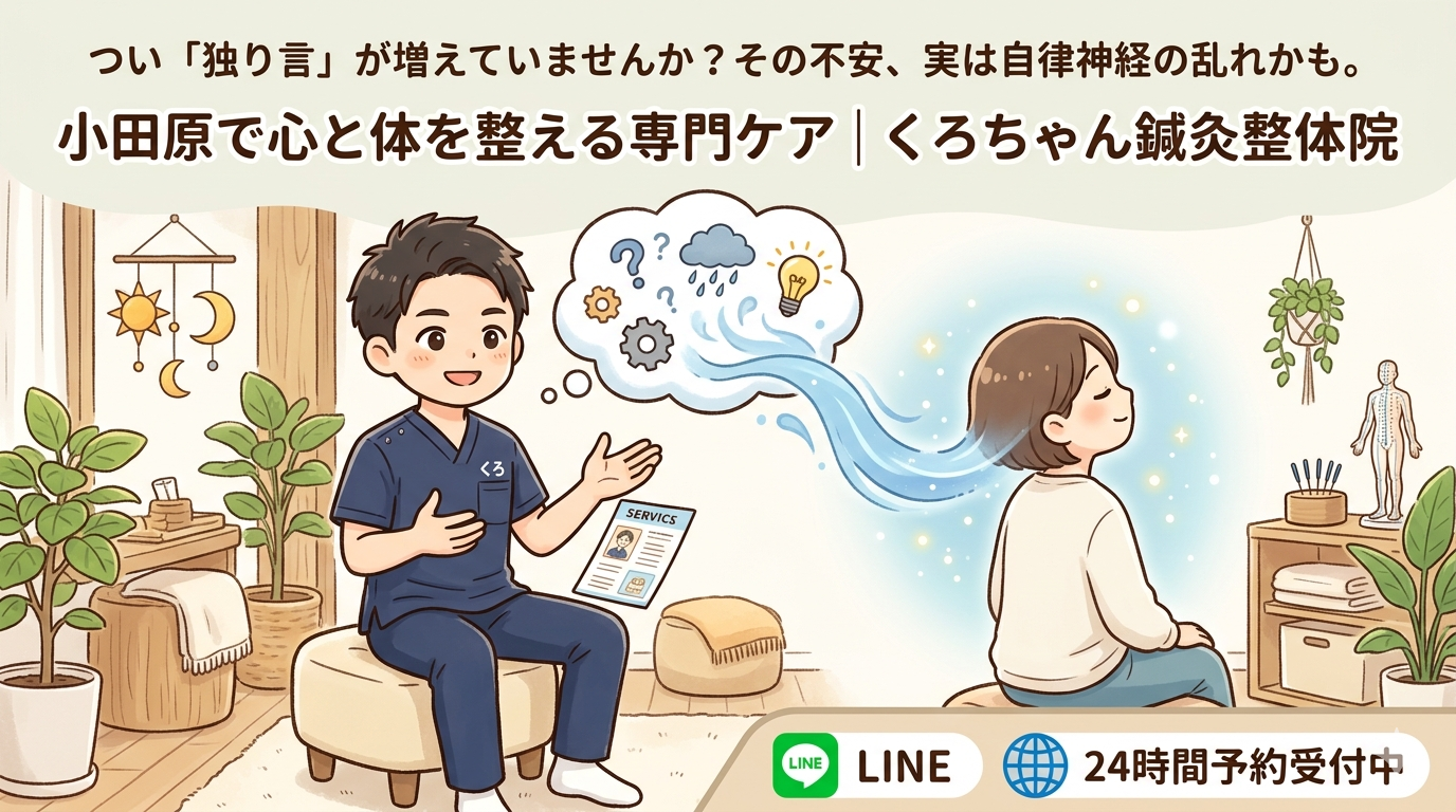 今回は、なぜ独り言が増えてしまうのか、そして「くろちゃん鍼灸整体院」ではどのようにそのお悩みを解決していくのか、東洋医学と西洋医学の両面からお話ししていきますね。