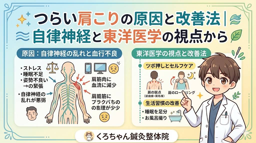 つらい肩こりの原因と改善法|自律神経と東洋医学の視点から|くろちゃん鍼灸整体院