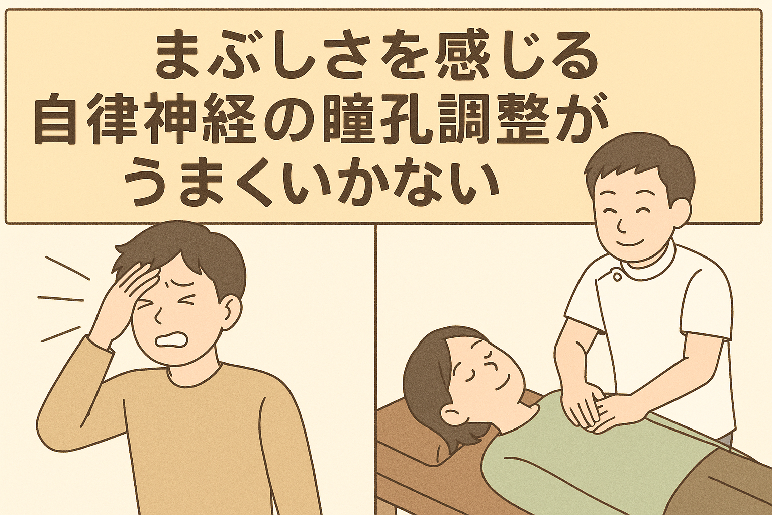 この記事では、まぶしさを感じる仕組みを、自律神経の視点と東洋医学の視点から分かりやすく解説し、当院で行う骨盤矯正・猫背矯正・鍼灸施術・頭部施術の効果を丁寧にご紹介します。