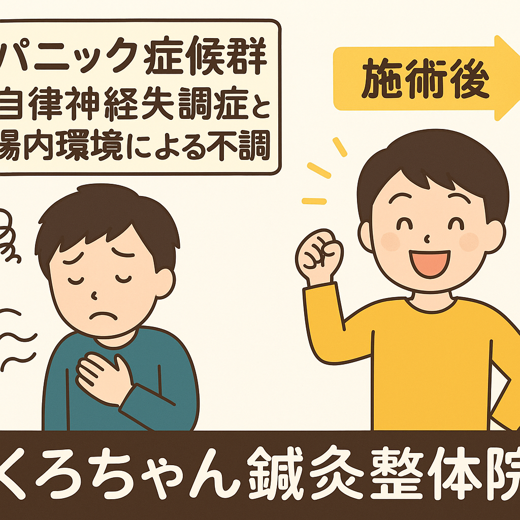 この記事では、そんなパニック症候群の背景にある自律神経と腸内環境の関係を、東洋医学の視点も交えてわかりやすく解説し、さらにくろちゃん鍼灸整体院で行っている「骨盤矯正」「猫背矯正」「鍼灸施術」「頭部施術」がどのように改善に導くのかを詳しくお伝えします。