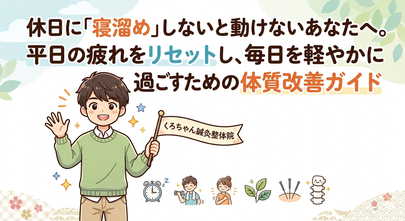 小田原市の「くろちゃん鍼灸整体院」には、あなたと同じように「平日の疲れがひどすぎて、休日は一日中寝ていないと持たない」というお悩みを抱えた方がたくさん来院されます。実はその状態、ただの寝不足ではなく、自律神経の乱れや東洋医学的な「エネルギー不足」が深く関わっているんです。