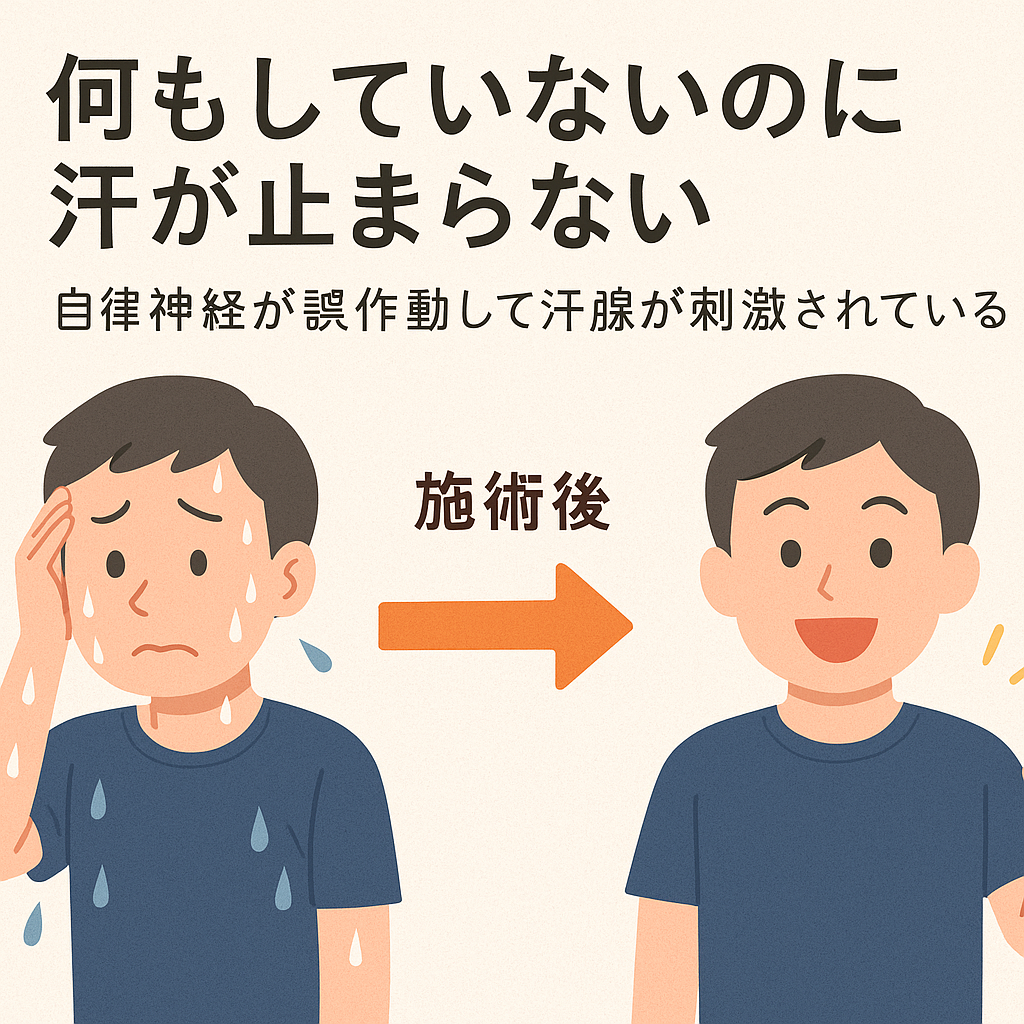 交感神経の出口を物理的に圧迫し、汗腺への信号が狂う原因にもなります。
