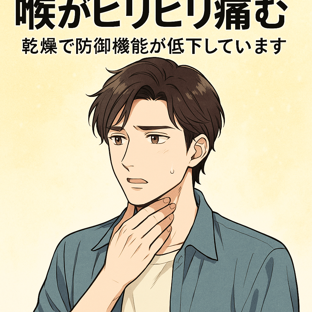冬場はもちろん、エアコンの使用が増える季節には、屋内外を問わず湿度が一気に下がります。その結果、喉の粘膜がうまく潤わず、防御機能が低下し、ヒリつきや痛みを感じやすくなります。