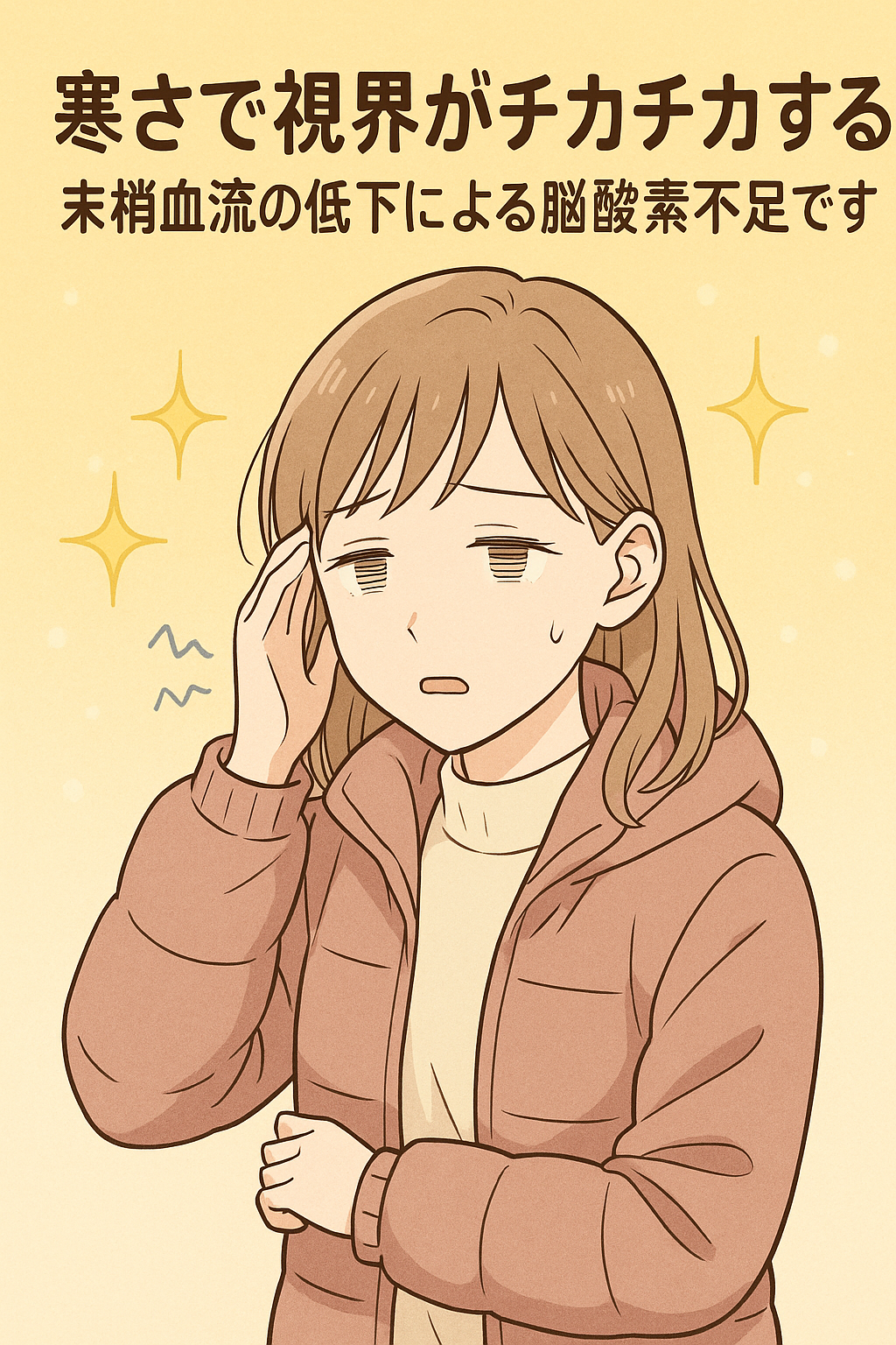 実はこの“視界のチカチカ”は、目そのものの問題ではなく、 寒さによる末梢血流の低下から脳への酸素供給が不足しているサイン であることがとても多いんです。