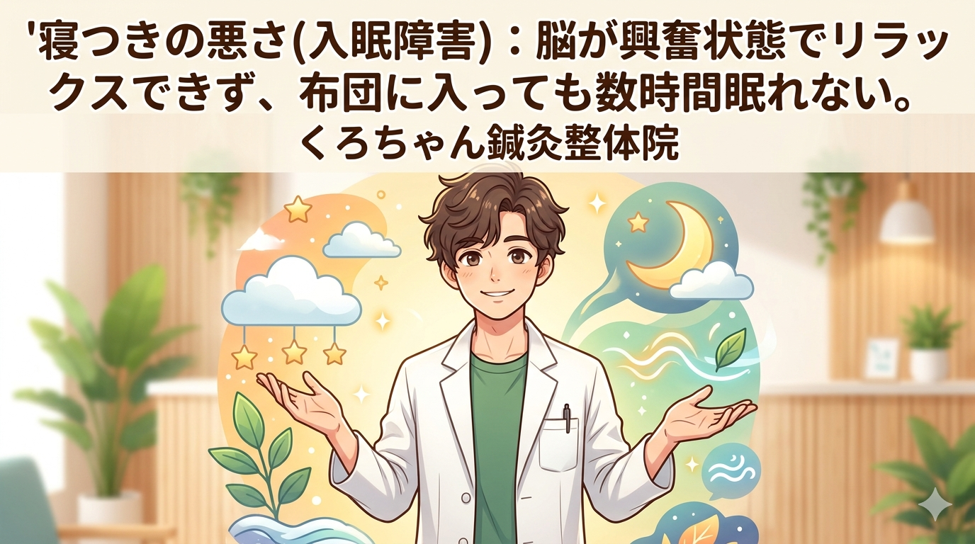 こんにちは。小田原市のくろちゃん鍼灸整体院です。 当院には、あなたと同じように「寝つきの悪さ(入眠障害)」で悩む方がたくさん来院されます。実は、その「眠れない」というサイン、あなたの心や体が弱いわけではなく、自律神経のスイッチが壊れてしまっている状態なんです。