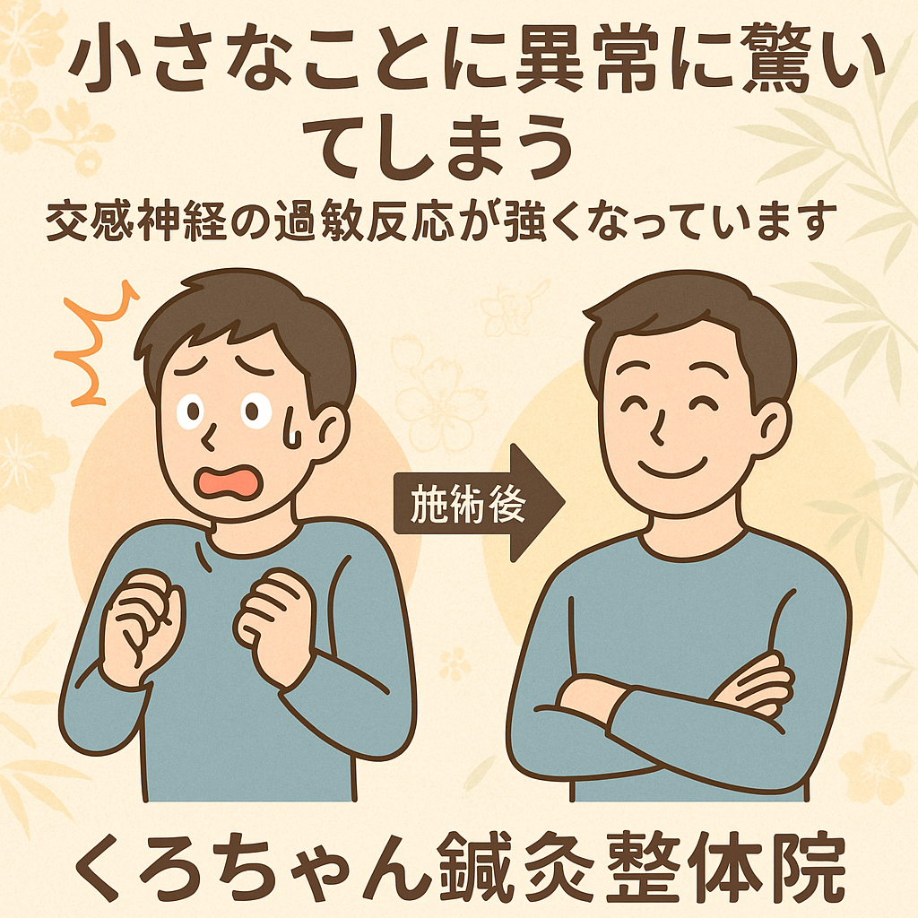 「小さなことに異常に驚いてしまう」というのは、心が弱いのではなく、体の防衛システムが過敏になっているサインです。交感神経が常に興奮している状態をリセットするには、骨格・筋肉・神経・東洋医学の総合的なアプローチが欠かせません。