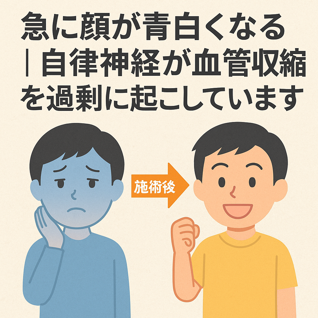 急に顔が青白くなるのは、「体が危険を感じて交感神経が過剰に働いているサイン」です。放っておくと、自律神経の緊張状態が慢性化し、めまい・倦怠感・不安感などにもつながります。