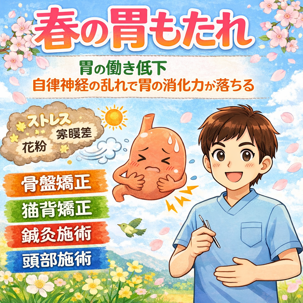 春の胃もたれ|胃の働き低下:自律神経の乱れで胃の消化力が落ちる