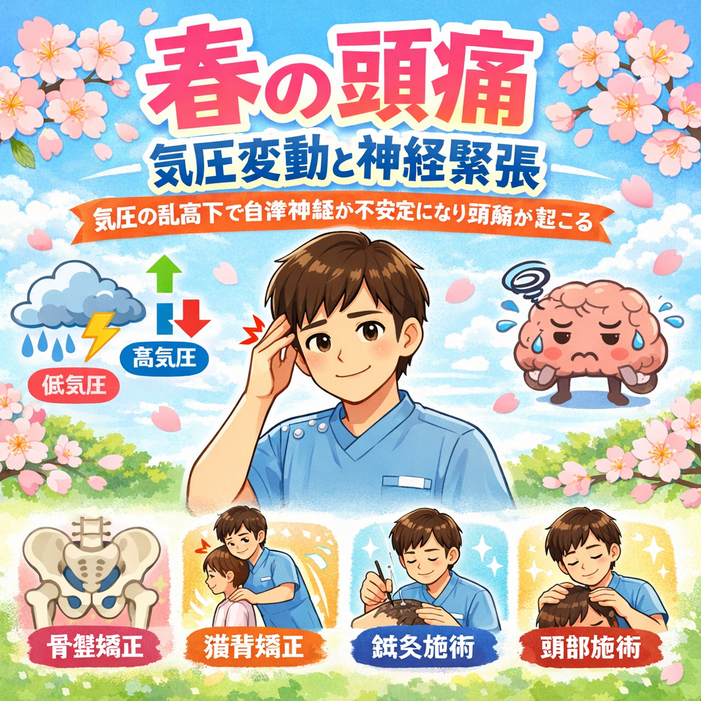 そこに春特有の気圧変動が重なることで、頭痛が出やすくなります。