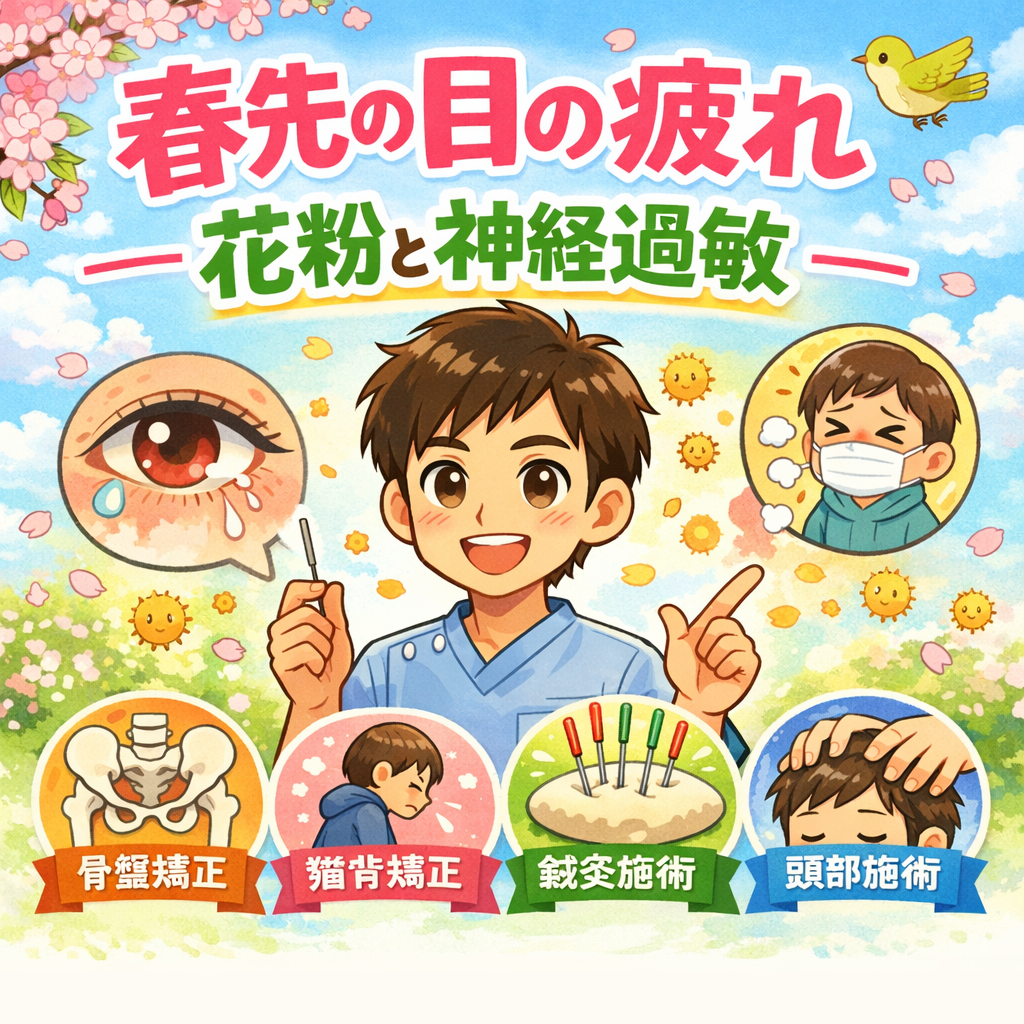春になると「なんとなく目が疲れる」「目の奥が重い」「目がかすむ」「まぶたがピクピクする」といった症状を感じる方が増えてきます。