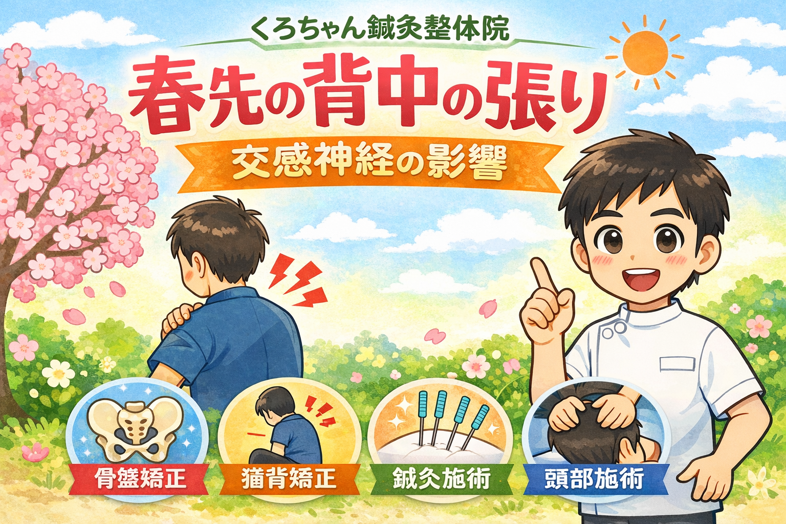 「春先の背中の張り|交感神経の影響」