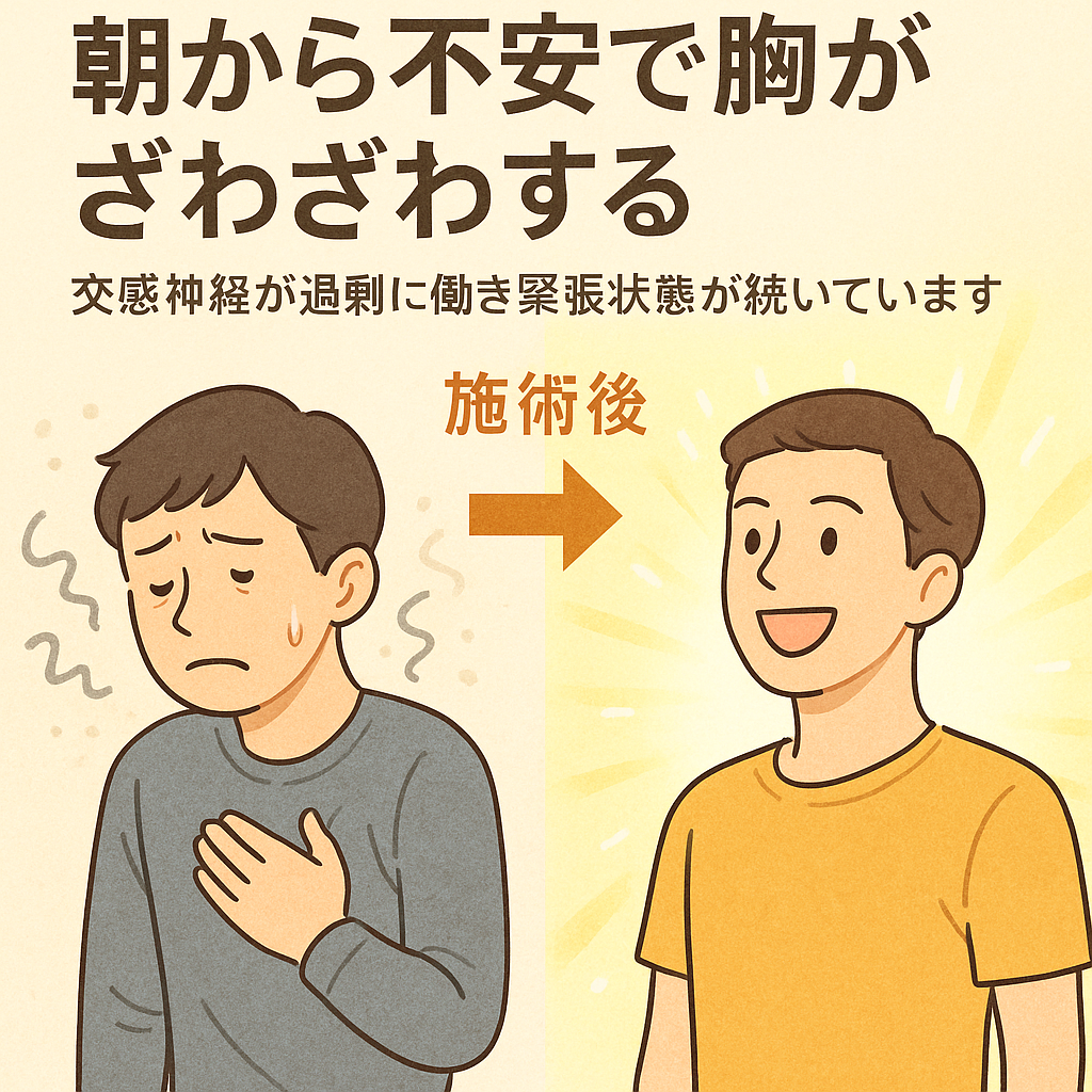このような「朝の不安感」や「胸のざわつき」は、実は自律神経の乱れが深く関係しています。特に、ストレスや緊張が続くことで交感神経が過剰に働き、心拍数や血圧を上げ、体が常に“戦闘モード”のままになっているのです。