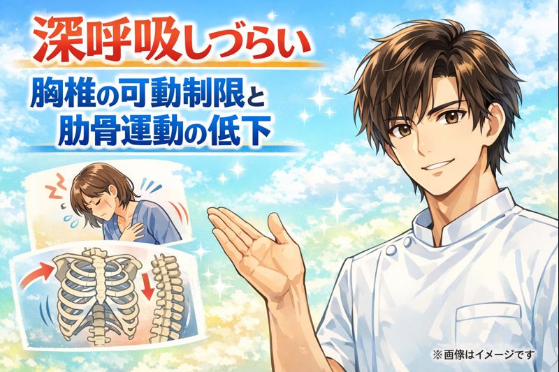 肺や気持ちの問題ではなく、背骨や肋骨の動きが固まっているサイン であることがとても多いです。