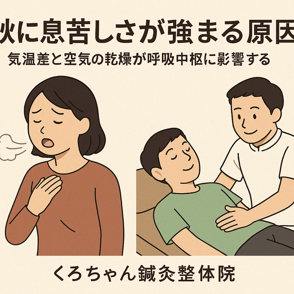 実はこの背景には、気温差による自律神経の乱れや、空気の乾燥による呼吸中枢への負担が深く関わっています。さらに東洋医学の視点からも、秋は「肺」が影響を受けやすい季節とされ、咳・息苦しさ・胸の重さなどが出やすいのです。