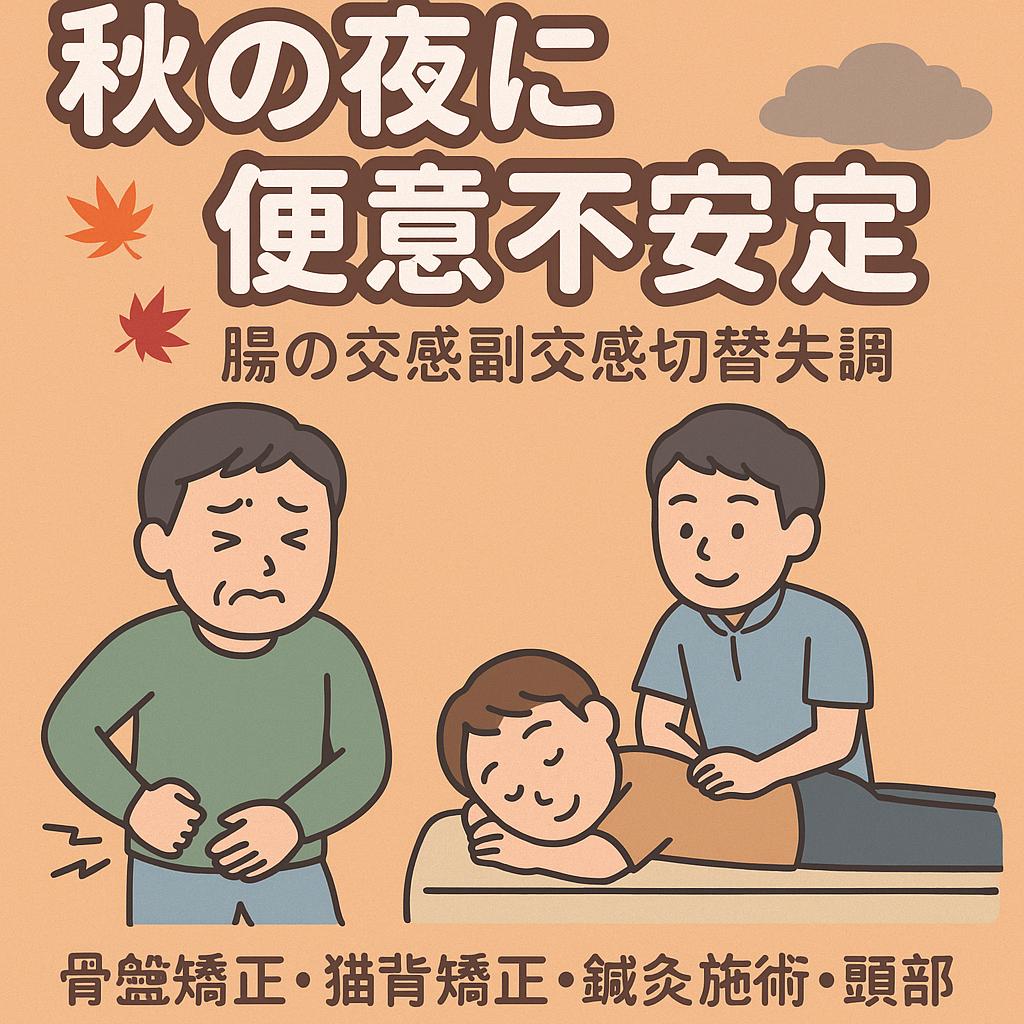 くろちゃん鍼灸整体院にも、秋になると「夜になるとお腹の調子が悪い」「寝る前に何度もトイレに行きたくなる」というご相談が増えてきます。今回は、この“秋の夜の便意不安定”について、自律神経の視点と東洋医学の両面から詳しくお話しします。