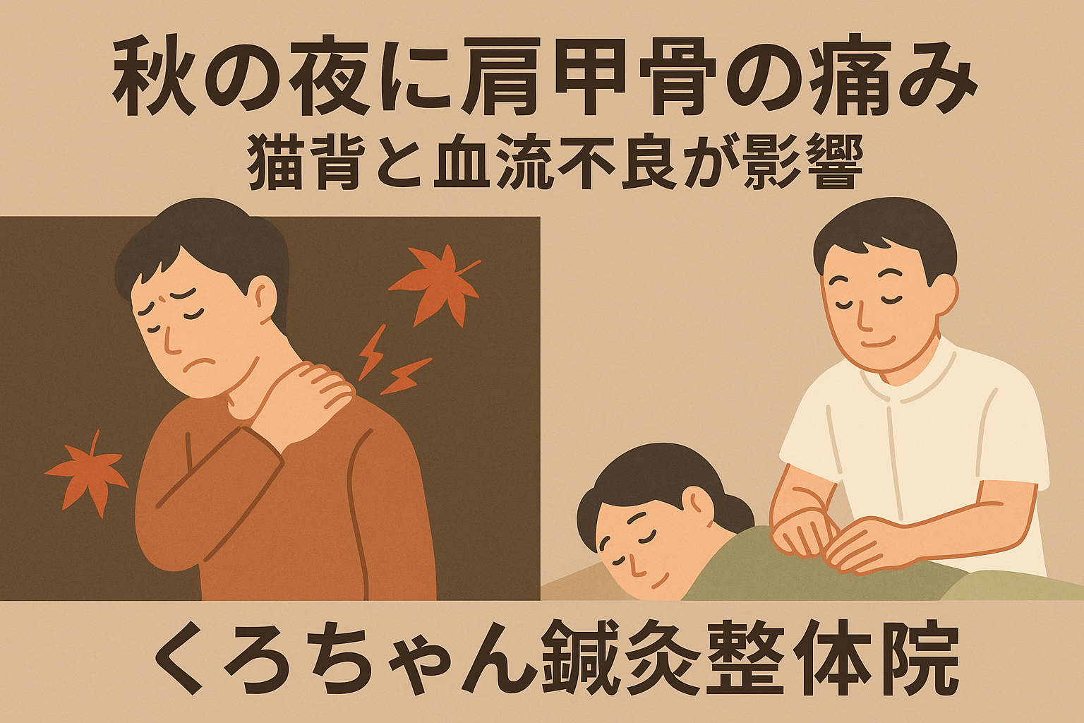 今回は「秋の夜に肩甲骨痛み ― 猫背と血流不良が影響」というテーマで、