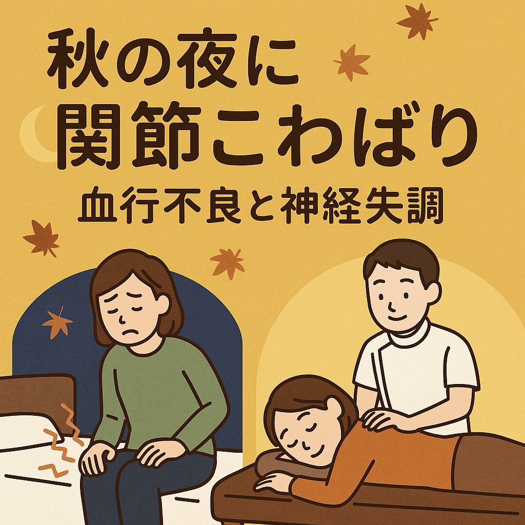 秋の夜に関節こわばり ― 血行不良と神経失調