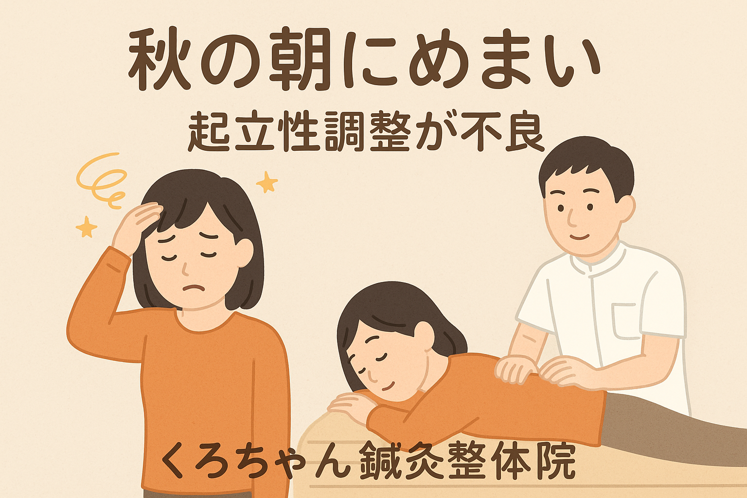 今回は「秋の朝にめまい ― 起立性調整が不良」というテーマで、自律神経の仕組みと東洋医学的な解釈をわかりやすくお話ししながら、当院での骨盤矯正・猫背矯正・鍼灸施術・頭部施術がどのように改善に役立つのかを詳しくご紹介していきます。