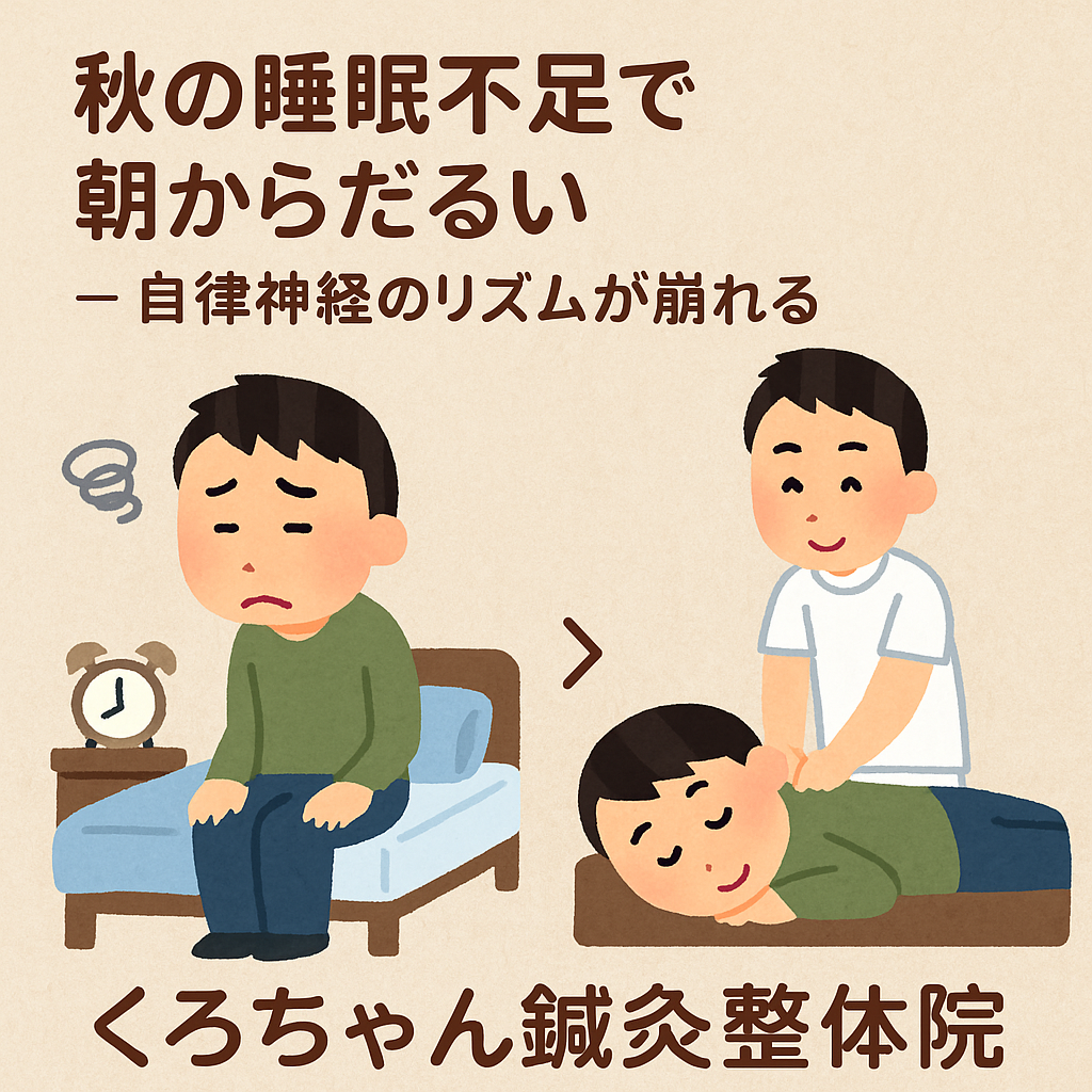 このブログでは、**「秋の睡眠不足で朝からだるい」**というお悩みについて、自律神経の仕組みと東洋医学的な観点から詳しく解説し、くろちゃん鍼灸整体院で行っている骨盤矯正・猫背矯正・鍼灸施術・頭部施術の効果をご紹介します。さらに、回復に必要な通院頻度やご予約方法についてもお伝えしていきます。