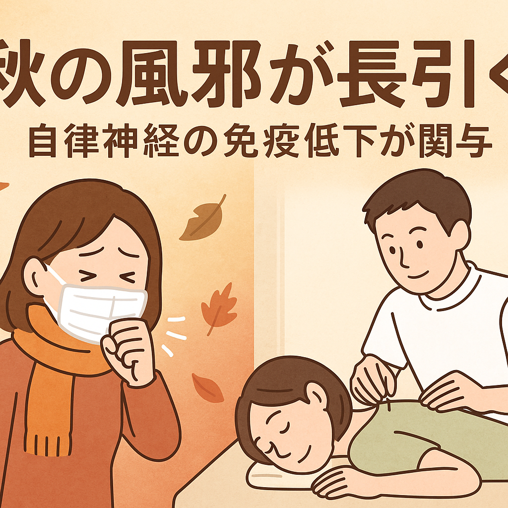 秋になると、そんなお悩みを訴える患者さんが増えてきます。気温差や乾燥、そして夏の疲れを引きずったままの体は、自律神経のバランスが乱れやすく、その結果、免疫力が下がって風邪が長引いてしまうのです。