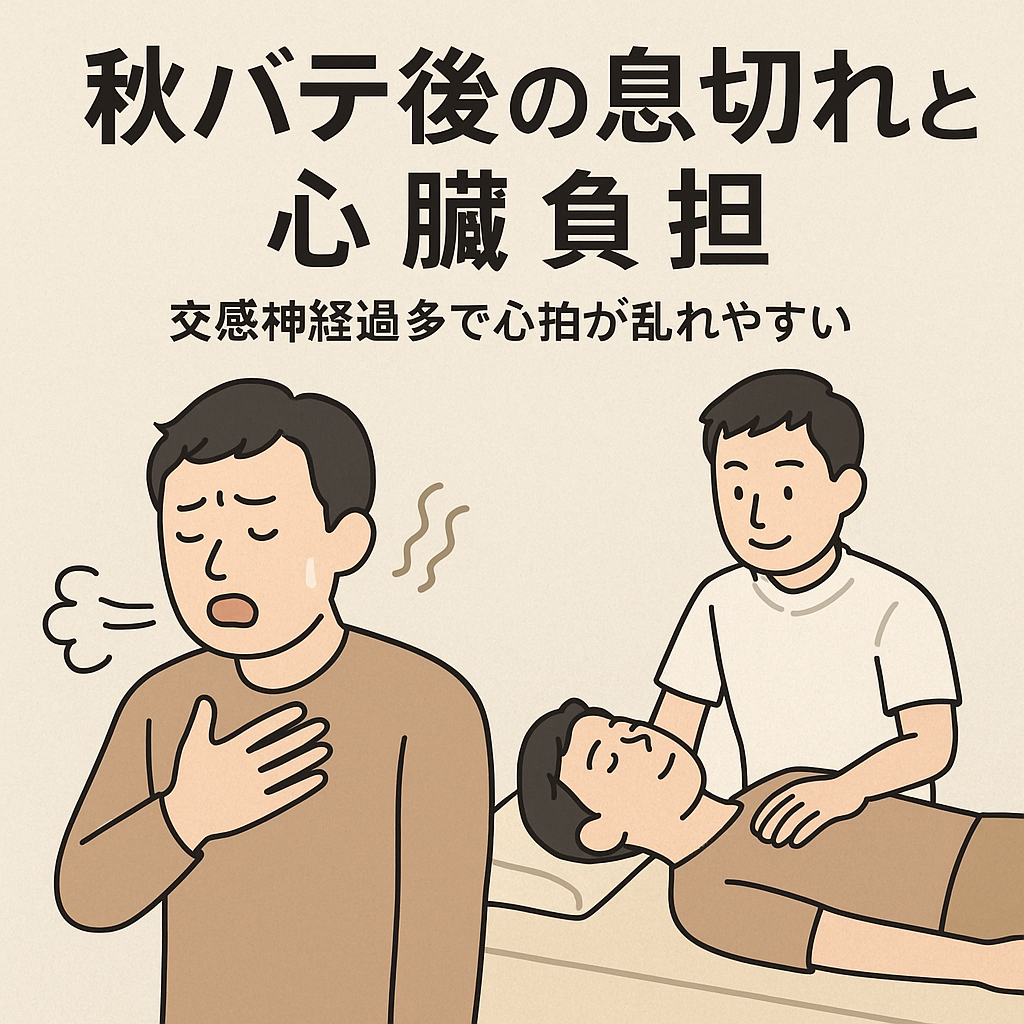 秋バテ後の息切れや心臓負担は、単なる「季節疲れ」ではなく、自律神経や東洋医学的な臓腑の不調が複雑に関わっています。放っておくと冬にかけて慢性化することもありますので、早めのケアが大切です。
