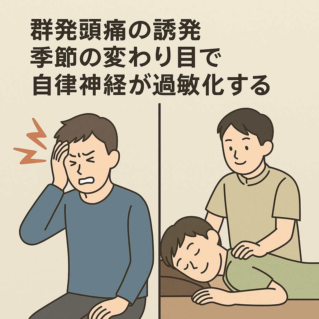 つまり、季節変化による自律神経の過敏化が、群発頭痛の大きな引き金となるのです。