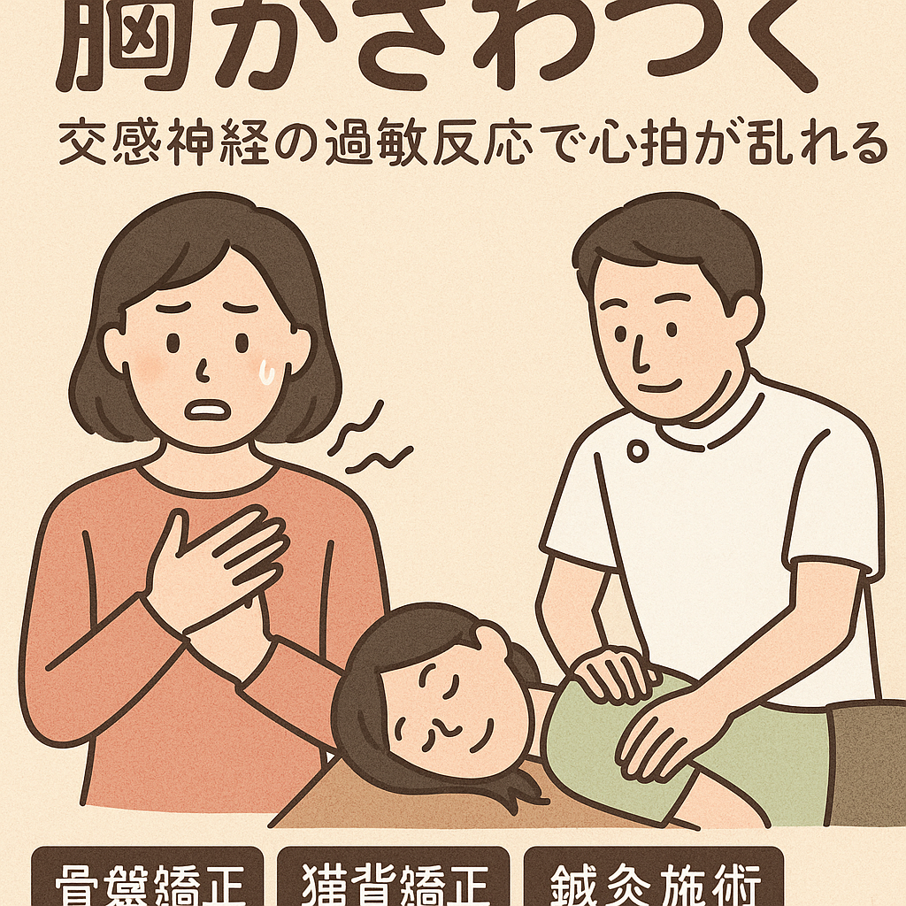 本記事では、自律神経の仕組みと東洋医学的な視点を交えて「胸のざわつき」の背景をわかりやすく説明します。さらに、当院で行っている骨盤矯正・猫背矯正・鍼灸施術・頭部施術が、どう症状改善に役立つのかを詳しく解説します。