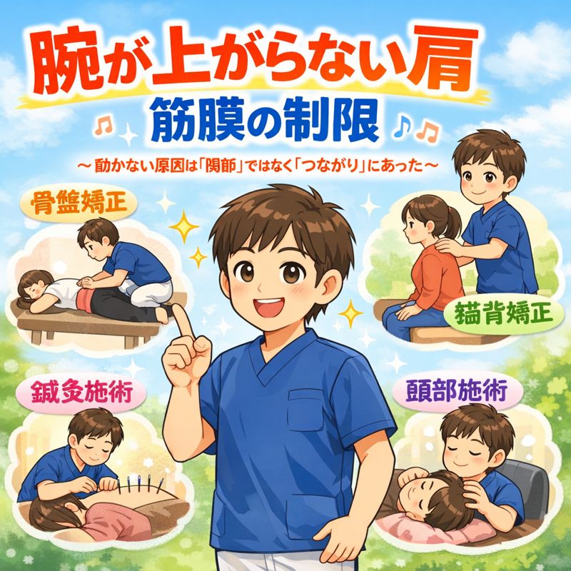 その原因、**肩関節そのものではなく“筋膜の制限”**にあるケースが少なくありません。