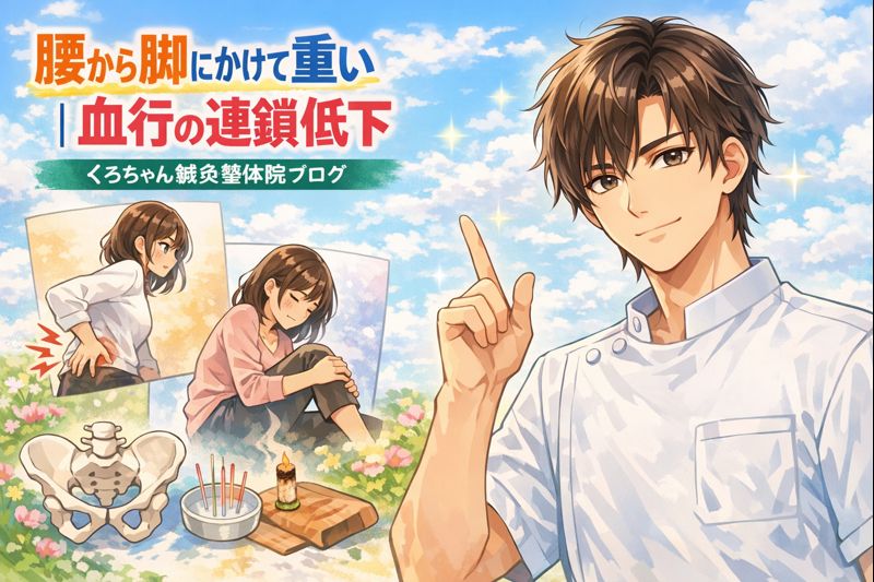 上流である腰・骨盤の流れが悪くなり、下流の脚まで影響が波及します。