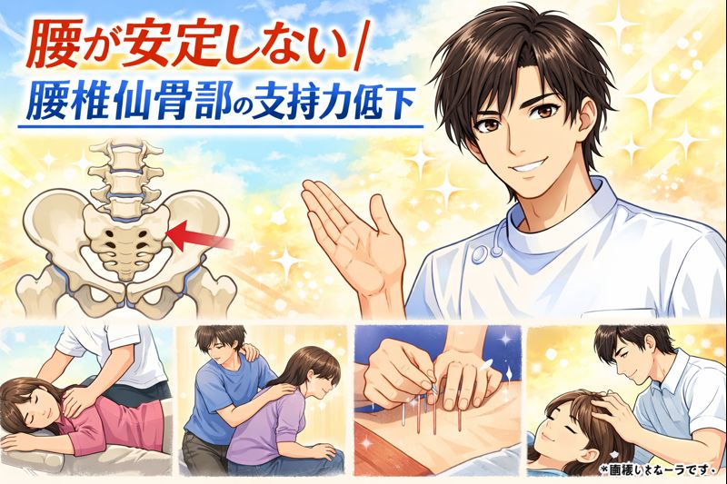 腰椎仙骨部(ようついせんこつぶ)の支持力低下です。