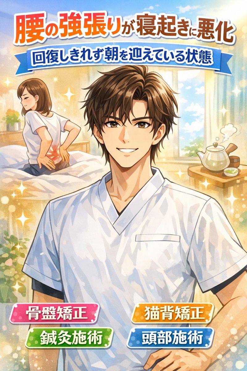 それなのに朝に腰の強張りが悪化している場合、体はしっかり回復しきれないまま朝を迎えている状態といえます。