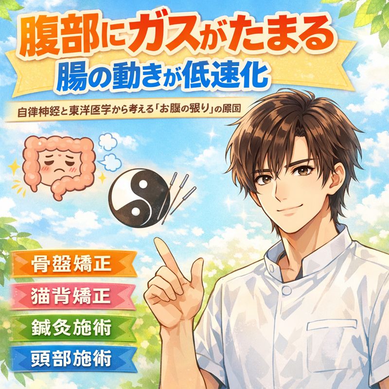 腹部にガスが溜まりやすい状態は、腸そのものの問題だけでなく、腸を動かす“神経”の問題が深く関係しています。