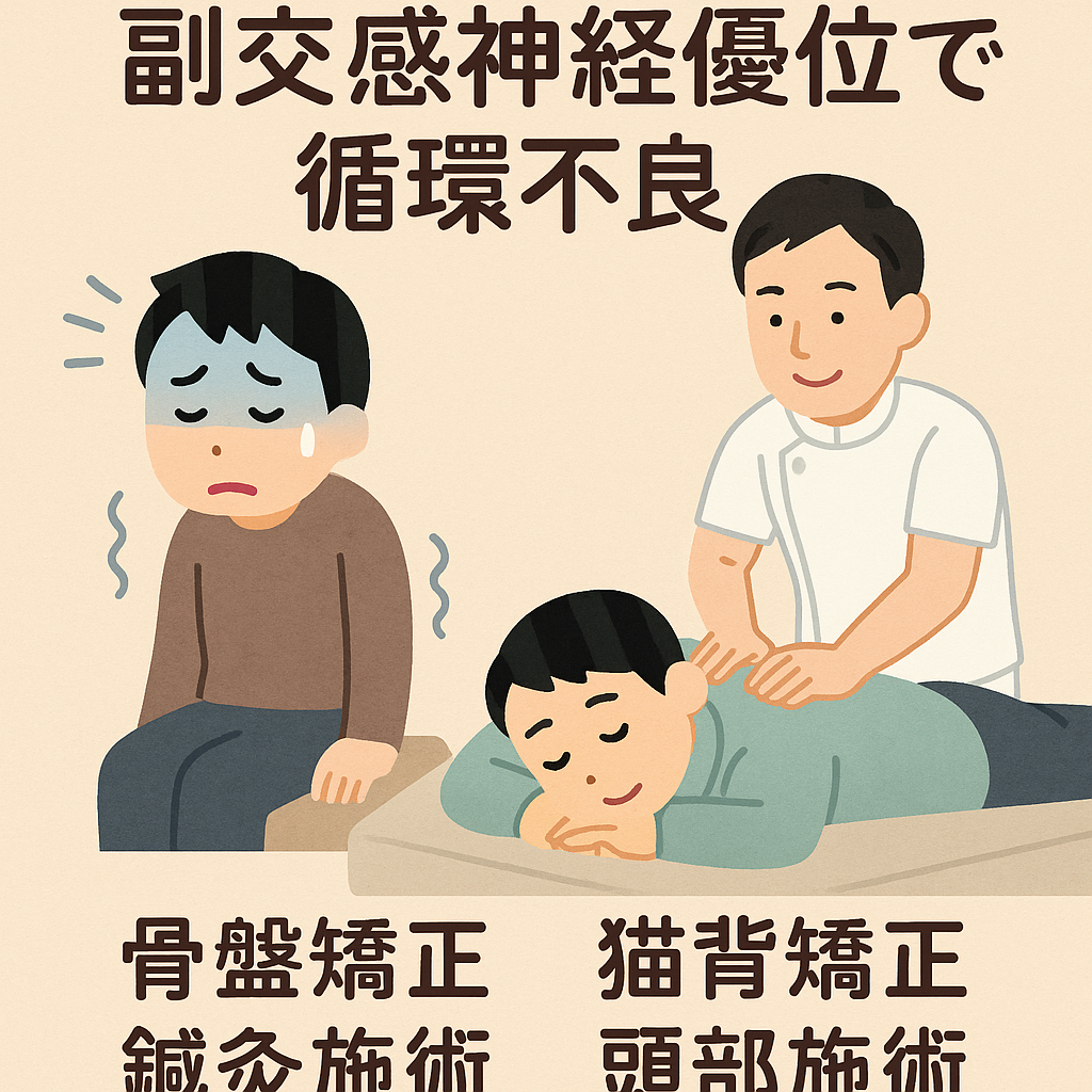 本記事では、**「血圧が低い 副交感神経優位で循環不良」**というテーマをもとに、自律神経と東洋医学の視点から原因と改善策を解説していきます。さらに当院の施術(骨盤矯正・猫背矯正・鍼灸施術・頭部施術)がどのように効果を発揮するのかを詳しくお伝えします。