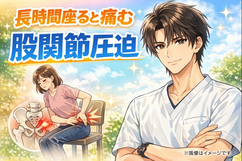 実はこの症状、**単なる疲労ではなく「股関節の圧迫」**が関係しているケースが少なくありません。