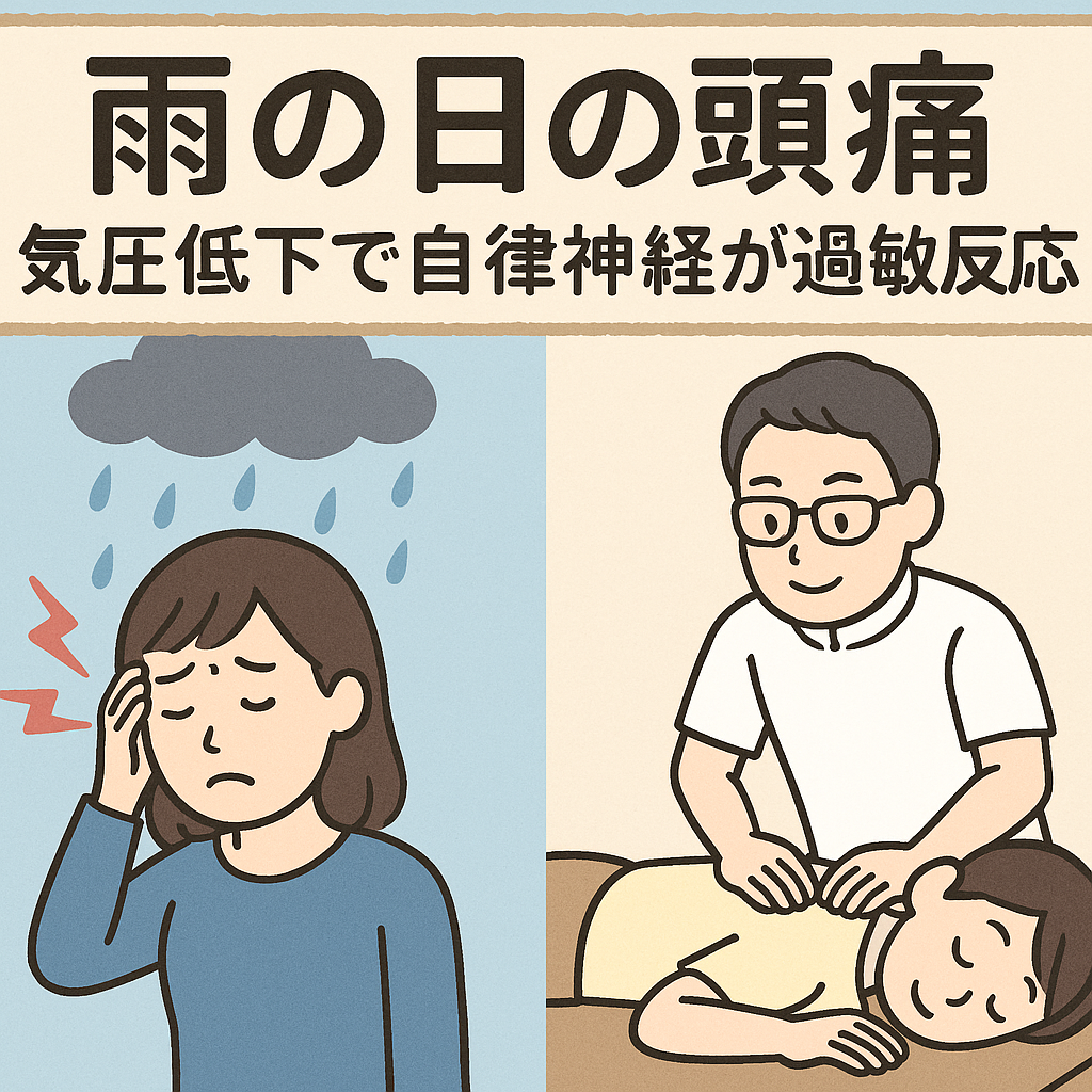 今回は、**「雨の日の頭痛 ― 気圧低下で自律神経が過敏反応」**というテーマで、