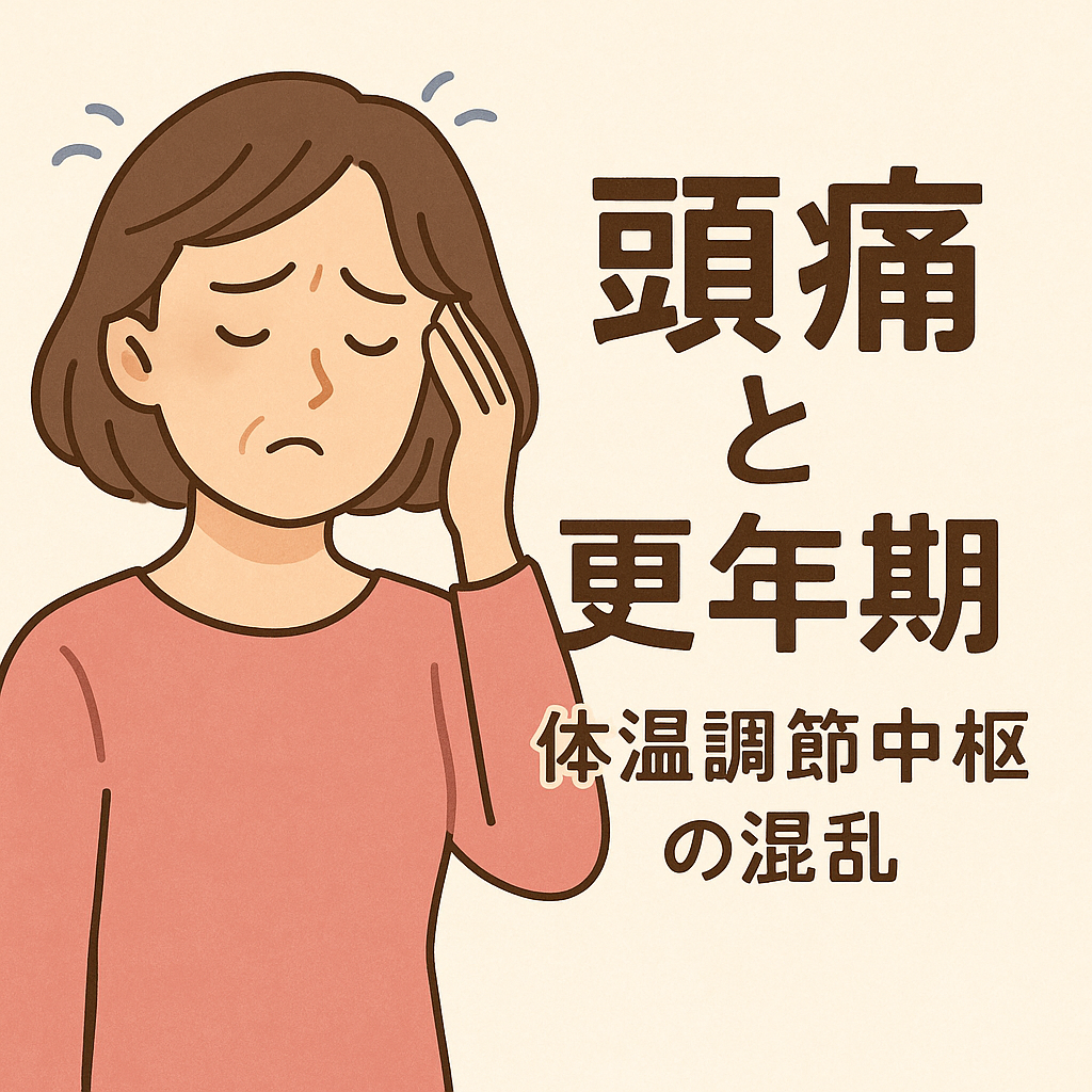 更年期は、女性ホルモン(エストロゲン)の分泌が急激に減少する時期。この変化は脳の視床下部にある「体温調節中枢」にも影響を及ぼし、体温の上下、発汗、のぼせ、そして頭痛といった不快症状を引き起こします。