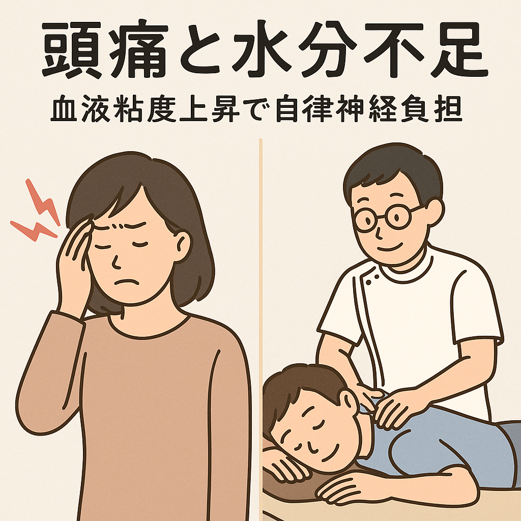 今回は、そんな「水分不足による頭痛」について、自律神経の仕組みと東洋医学の視点から分かりやすく解説し、当院での施術アプローチも詳しくご紹介します。