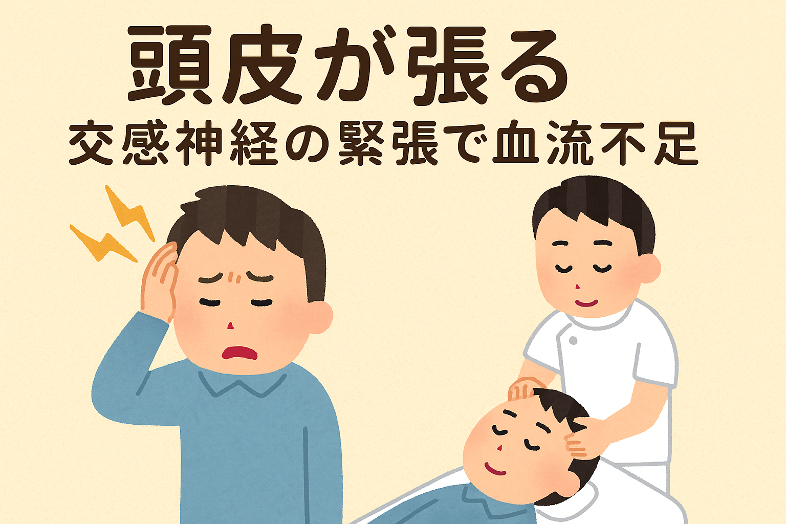 交感神経が過剰に働くと、体は常に「緊張モード」になり、血管が収縮してしまいます。頭皮の毛細血管は特に影響を受けやすく、血流不足によって頭皮の筋肉が硬くなり、「張る」ような不快感が現れるのです。
