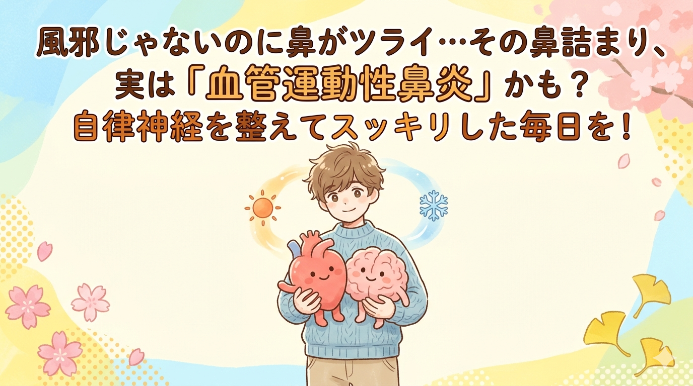 そんな風に、一人で悩んでいませんか? 周りの人に「風邪?」と聞かれても、「いや、風邪じゃないんだけどな…」と説明に困るその症状。実は、急激な気温の変化に体がついていけなくなる**「血管運動性鼻炎(寒暖差アレルギー)」**かもしれません。