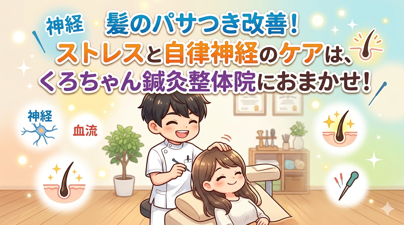 「えっ、ストレスで髪質が変わるの?」と思うかもしれませんが、体は全部つながっています。くろちゃん鍼灸整体院では、表面的なケアではなく、体の内側から「ツヤ髪」を取り戻すためのお手伝いをしています。